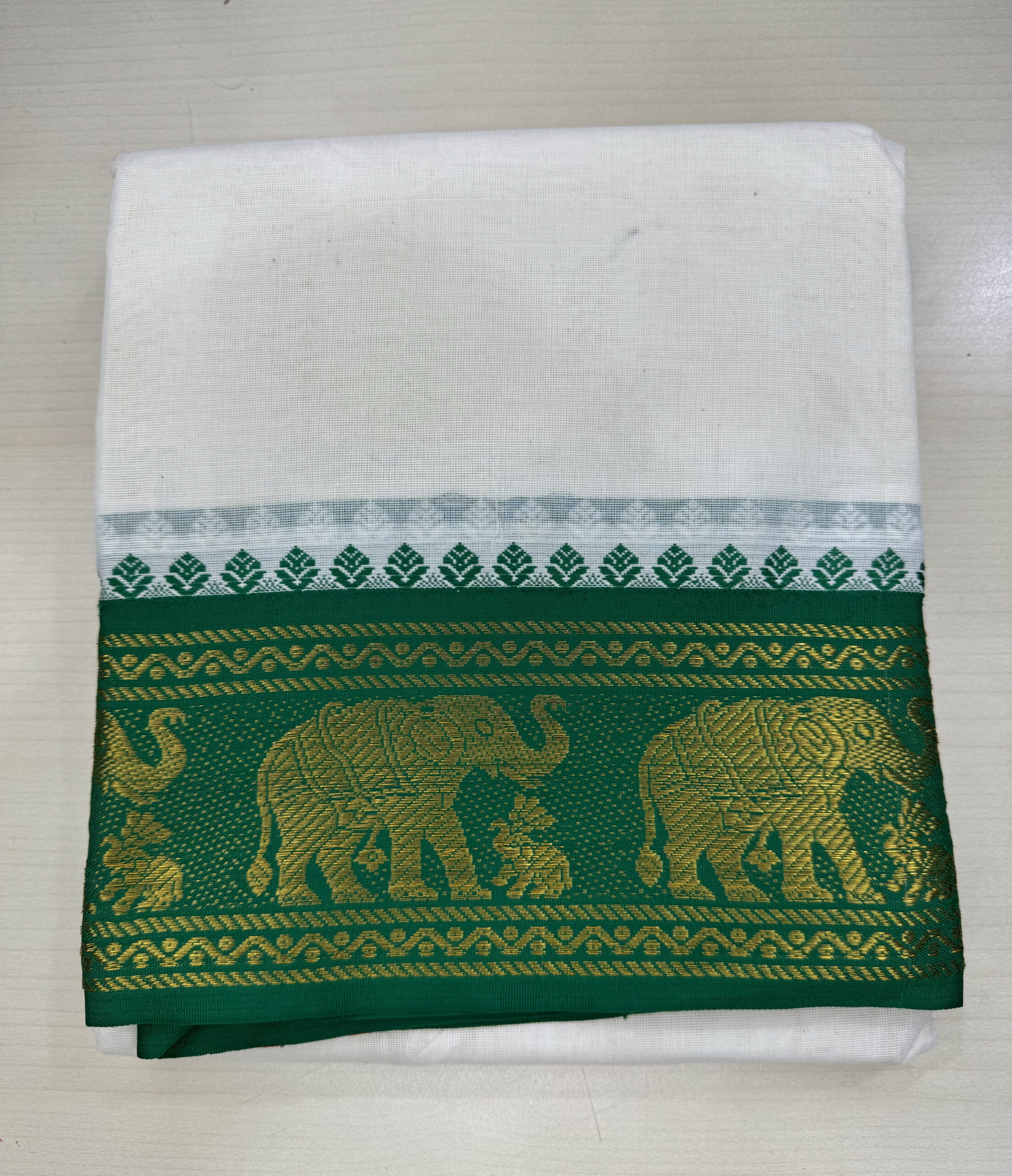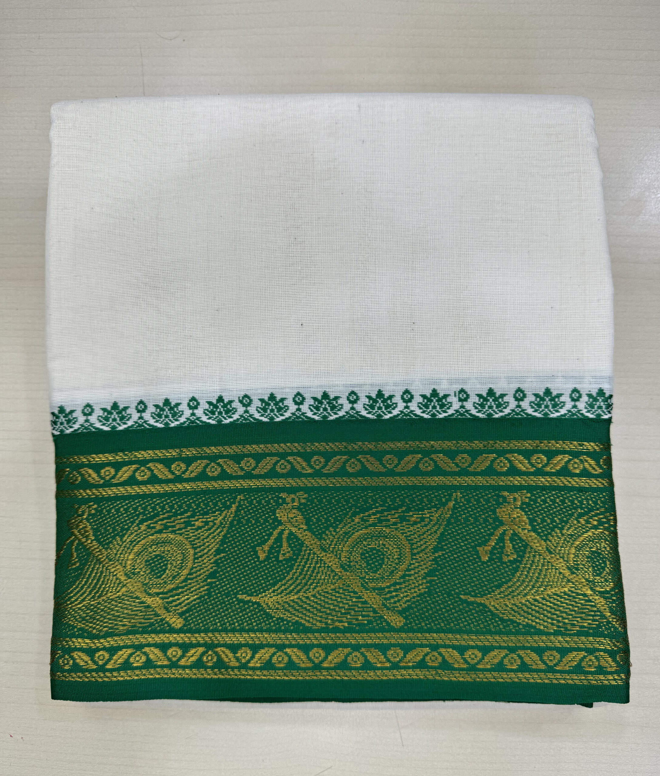 PREMIUM COTTON KORVAI CREAM DHOTI WITH MAROON / GREEN ZARI BORDER (5 MAADAM)